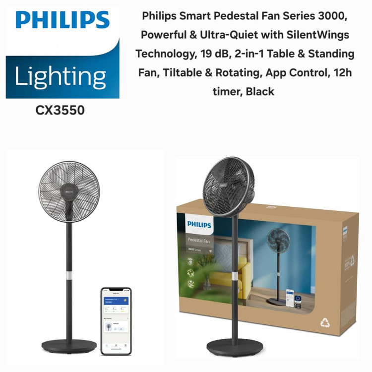پنکه فیلیپس مدل CX3550 یک پنکه ایستاده با طراحی مدرن و ویژگیهای کاربردی است. این پنکه دارای توان 48 وات و 7 پره است که باعث ایجاد جریان هوای قوی میشود. همچنین دارای تایمر 12 ساعته، سه حالت تنظیم سرعت و قابلیت چرخش 30 درجه به بالا و پایین و 90 درجه به چپ و راست است. از دیگر ویژگیهای این پنکه میتوان به قابلیت تنظیم ارتفاع، حالتهای مختلف باددهی (حالت خواب، معمولی و حالت نسیم)، و امکان کنترل از راه دور اشاره کرد.