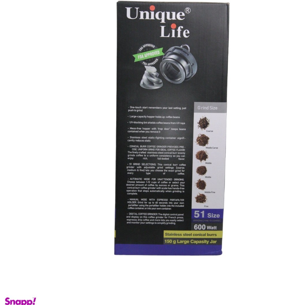 ویژگی های مختصر آسیاب قهوه یونیک لایف مدل 014 :