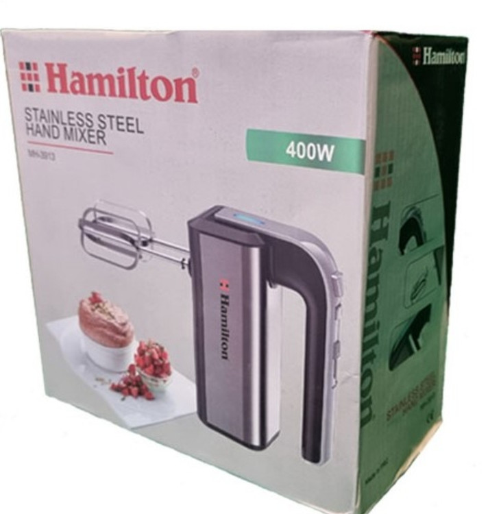 همزن هامیلتون مدل ۳۹۱۳ از دو نوع سری متفاوت همزن و خمیر زن برخوردار میباشد میتوانید با استفاده از آن انواع خامه، کیک، خمیر و… عمل می نمایید. جنس بدنه این دستگاه از استیل ضد زنگ میباشد و از دوام بالایی برخوردار میباشد. همزن بدون کاسه هامیلتون بسیار پر قدرت است موتور آن دارای توان ۴۰۰ وات است